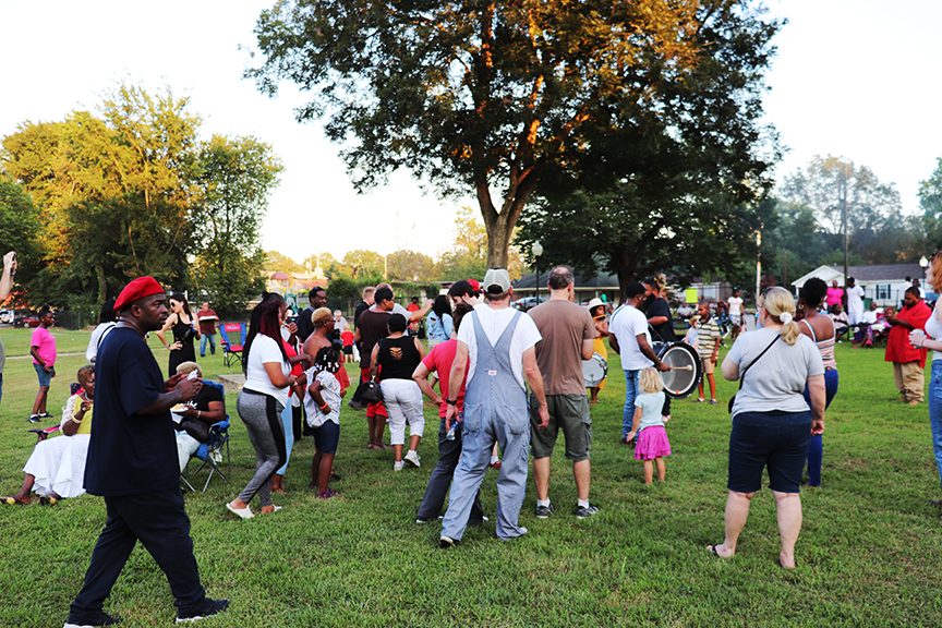 Sharde Thomas leads crowd w/ Rising Stars Fife n Drum Band, Como MS., RL BOYCE PICNIC 2019 photo by Amy Verdon